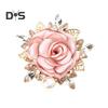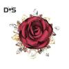 Очарование, вдохновленное розой: Оцените романтическое очарование нашей броши-розы, изящно украшенной золотистыми металлическими листьями, блестящими искусственными жемчужинами и мерцающими стразами, которые с изысканным мастерством передают сущность цветущих роз.
