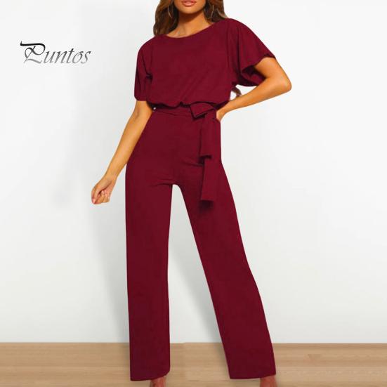 Этот комбинезон свободного кроя с круглым вырезом и поясом на талии подходит для разных типов фигур, легко демонстрируя ваше уникальное очарование..