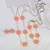 3 шт. 18-каратное позолоченное ожерелье с пятью листьями и цветами, серьги, браслет, комплект ювелирных изделий для женщин, модные украшения для вечеринок, повседневная одежда, клевер