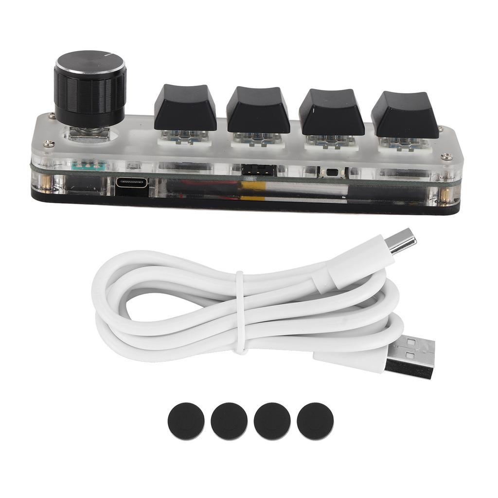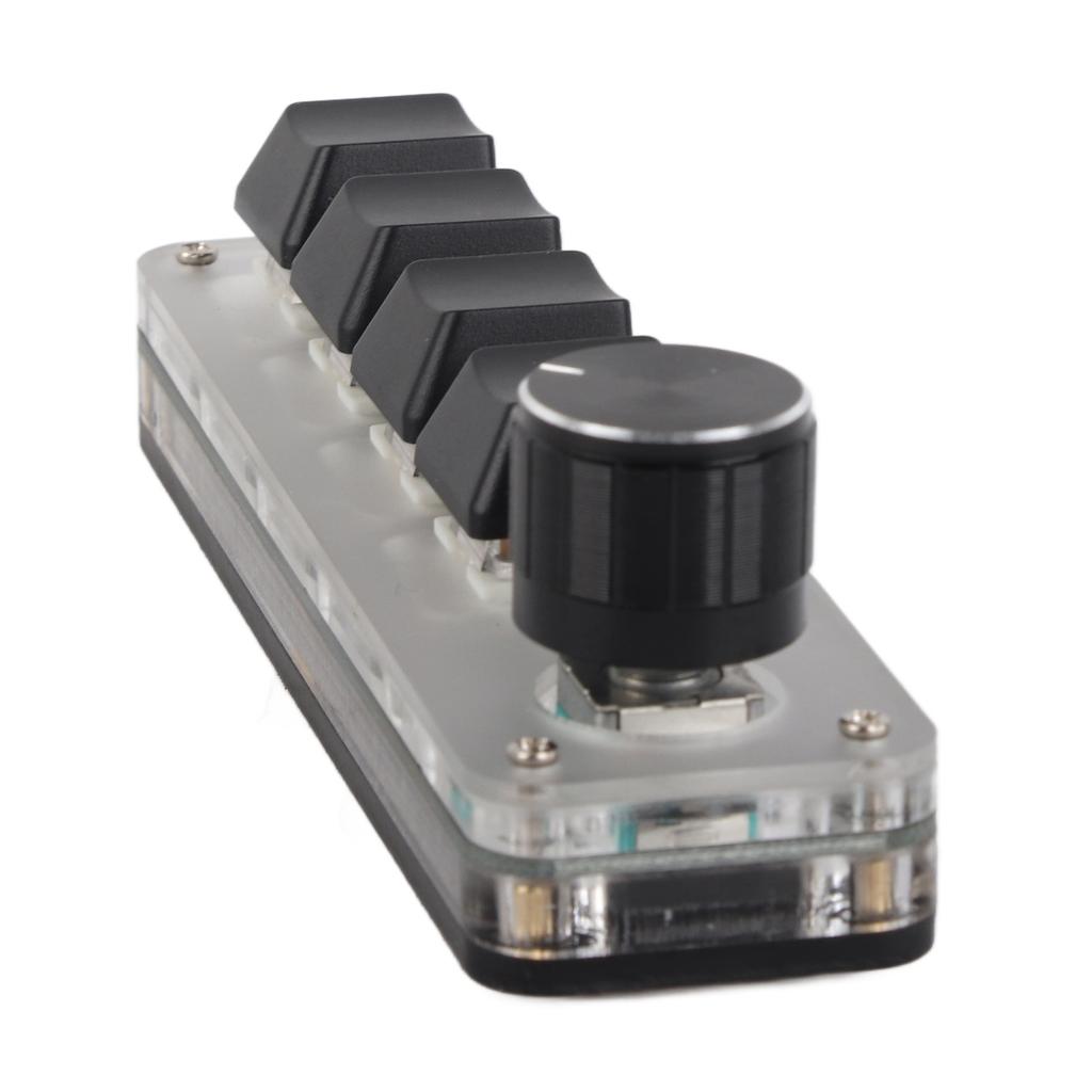 Мини-клавиатура с 4 клавишами, 1 ручкой, USB или BT, синяя кнопка переключения, программируемая клавиатура с подсветкой