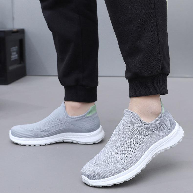 ИЗЫСКАННАЯ ТЕХНОЛОГИЯ ЛЕТНЕГО ВЯЗАНИЯ. Верх этой повседневной мужской обуви выполнен по технологии летающего вязания, которая очень дышащая и легкая.. В верхней части имеется множество плотных вентиляционных отверстий, которые могут эффективно рассеивать тепло и избегать знойной жары.. Он очень удобен для прогулок.