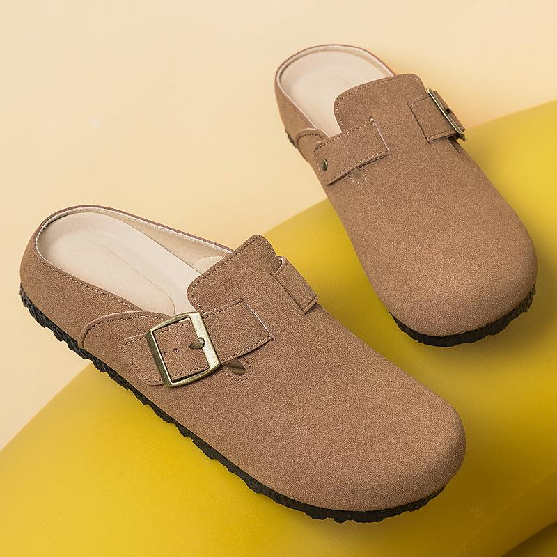 Максимальный комфорт: Мягкая глубокая пробковая стелька с чашечкой под пятку отлично облегает форму стопы, предотвращая скольжение. Поддержка свода стопы снимает давление, обеспечивая вашим уставшим ногам ощущение расслабления. Регулируемая пряжка подходит для разных типов ног и позволяет вам чувствовать себя комфортно и стильно в наших модных сабо.