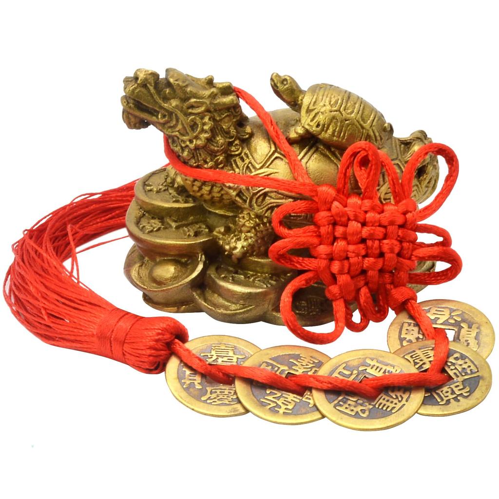 Основная информация: Украшение в виде дракона и черепахи, размер монеты Five Emperor: Длина 6,5 см. Набор: Орнамент «Дракон-черепаха», вес пяти императорских монет: Приблизительно 290 г Материал: Медная тема: Фэн-шуй