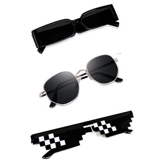 Sheomy Unisex Combo предлагает набор из 3 очков, солнцезащитные очки Square, прямоугольные, ретро, винтажные, узкие, женские::Мужчины, HBW-010