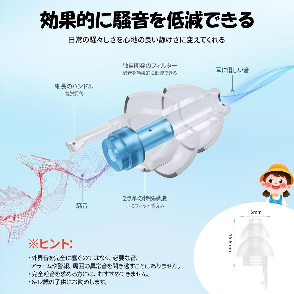 [Детские беруши с превосходной защитой слуха] Детские беруши Quietide снижают общий уровень окружающего шума и безопасно снижают громкость до уровня, который не повреждает ваш слух. Это беруши.. Он подавляет громкие звуки на концертных площадках и защищает ваш слух от таких шумов, как шум двигателей самолетов во время путешествий, звук в кинотеатре, репетиции игры на барабанах, взрывы фейерверков и шум на строительной площадке.. *Поскольку он не полностью звукоизолирован, вы можете быть уверены, что сможете слышать некоторые внешние звуки, одновременно снижая уровень шума.. Также подходит для людей с повышенной чувствительностью слуха.. Он умеренно снижает уровень окружающих звуков, позволяя вам наслаждаться любимой музыкой, при этом слышать необходимые объявления, сигналы тревоги и разговоры.. Риск потери слуха и шума в ушах после концерта, вызванных шумом, можно свести к минимуму.