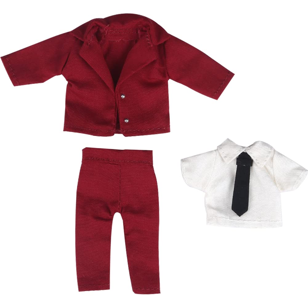 ❤Материал: Хлопковая ткань. ❤Стиль: Красный, 3 шт.. Стиль одежды для куклы OB11/длинное пальто. Повседневная одежда, хиропрактика — это стиль джентльмена. Комплект из 3 предметов состоит из длинного пальто + рубашки + брюк, к рубашке прилагается галстук.