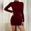 Новое осенне-зимнее женское полулетнее сексуальное платье с высоким воротом, длинными рукавами, завязками на бедрах и юбкой — купить товар онлайн с бесплатной доставкой по всему миру!
