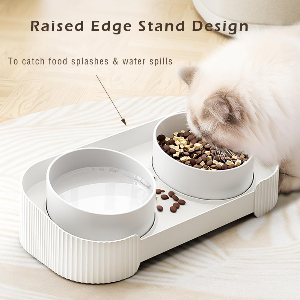Керамическая миска для кошек Marchul Raised Double Cat с кормом для кошек, миска для еды и воды для кошек и мелких собак, миска с нескользящей подставкой, миска с защитой от рвоты,