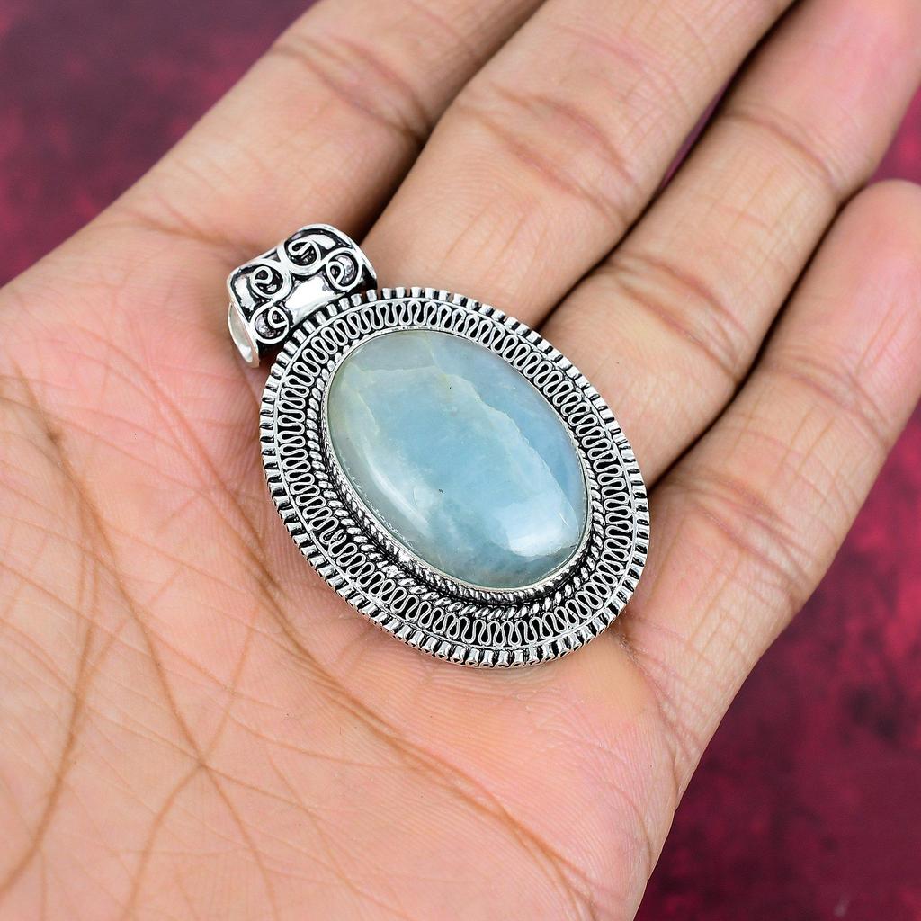 Аквамарин 925 сплошной серебряный кулон, кулон ручной работы с драгоценными камнями, подарки для жены абсолютно новый кулон
