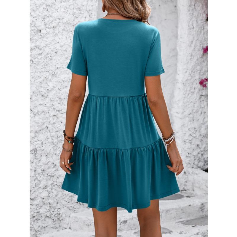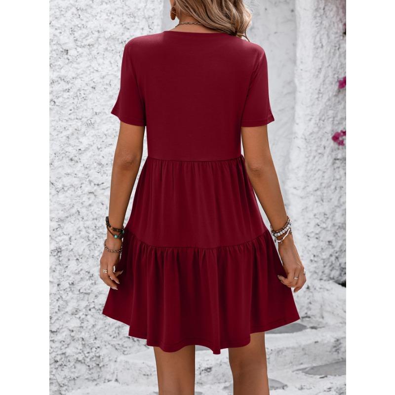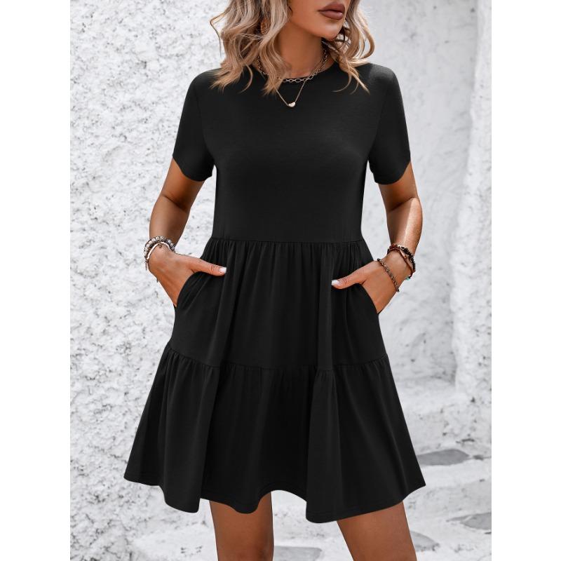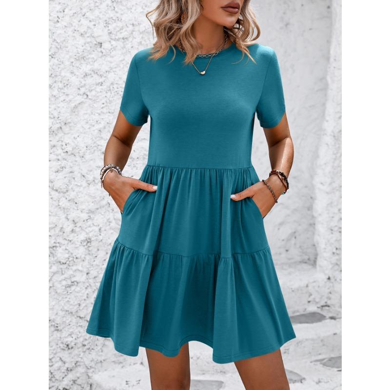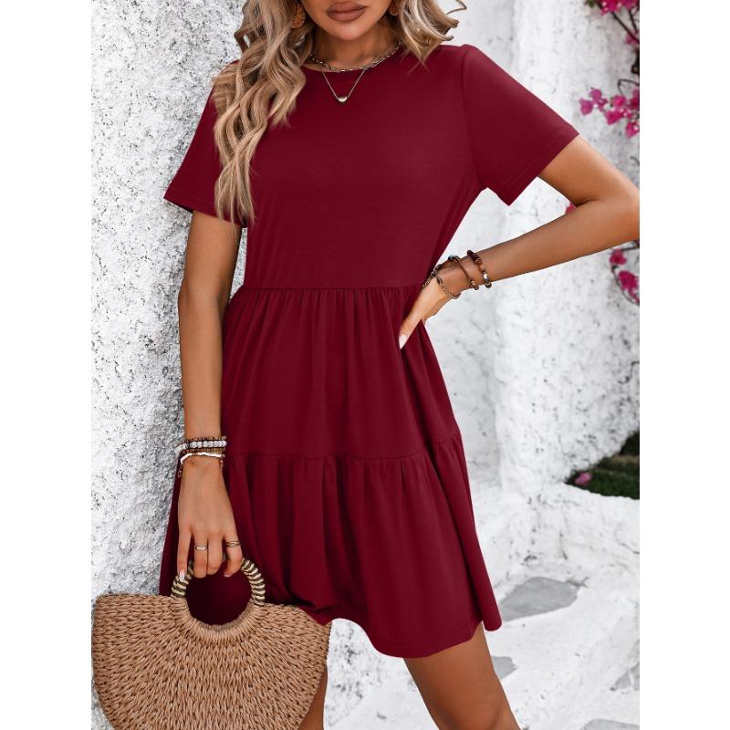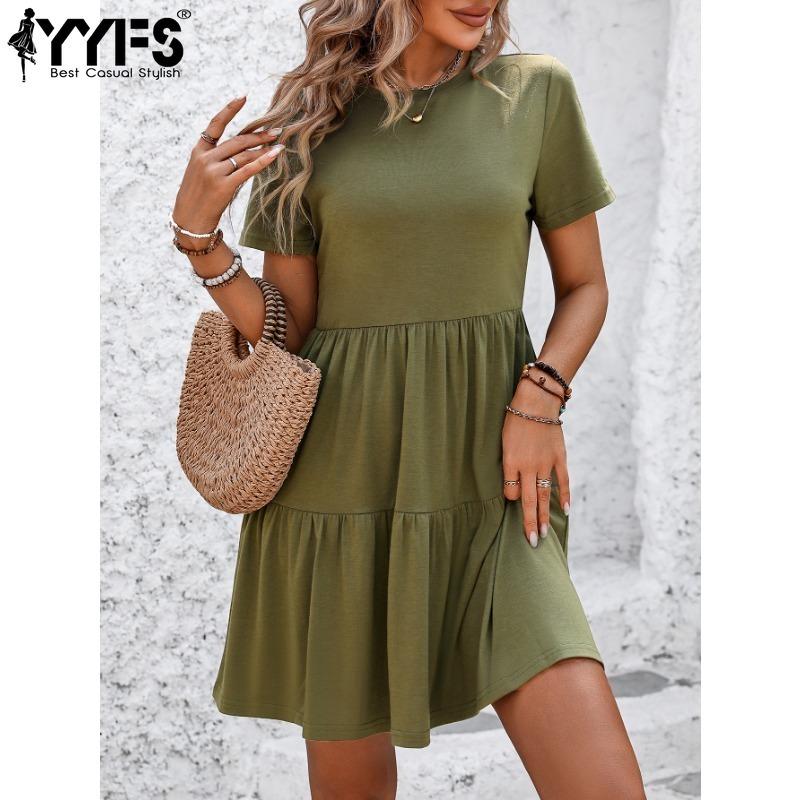 YYFS Женская мода лето весна однотонный принт с коротким рукавом и круглым вырезом с высокой талией повседневные платья