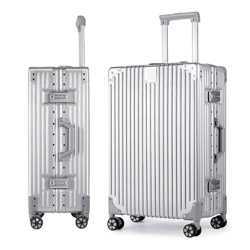 ◆ [Легкий и портативный] Алюминиевый каркас чемодана разработан таким образом, чтобы быть легким, уменьшая вашу нагрузку и делая вашу поездку более комфортной.. Он также оснащен ручкой с автоматическим возвратом в исходное положение и бесшумными колесами на 360°, что позволяет легко перемещать его между аэропортами, скоростными поездами и автобусами.