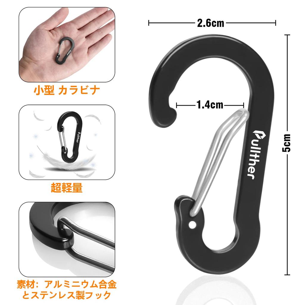 Карабин Pullther маленький 5 см сверхлегкий алюминиевый сплав уличный карабин для оттяжки рыболовный 20 шт. нержавейка
