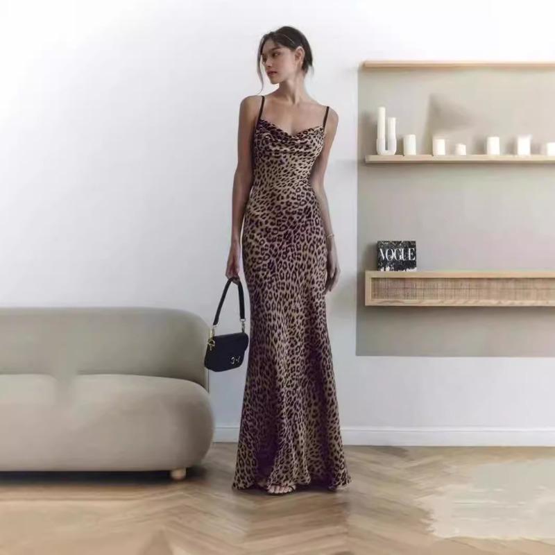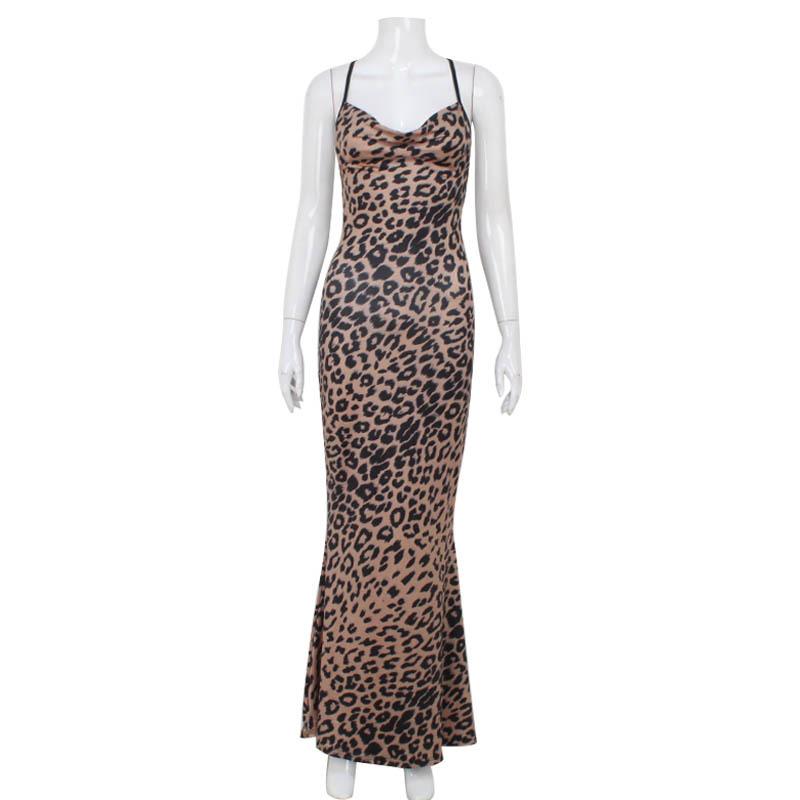 Женское летнее модное классическое платье с леопардовым принтом, сексуальное платье с открытой спиной и шнуровкой, с вырезом-рыбьим хвостом