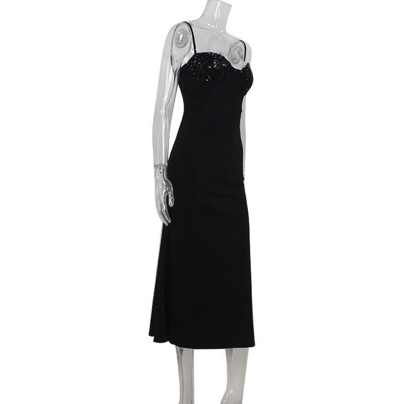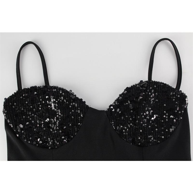 Женское новое модное элегантное платье без рукавов с бретельками на шее и пайетками, утягивающее талию