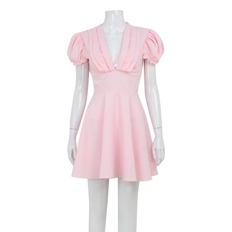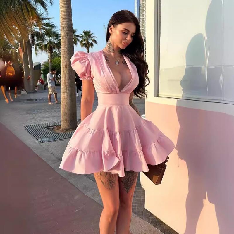 Летняя мода темперамент светская львица глубокий V-образный вырез рукава-фонарик талия пышное короткое платье
