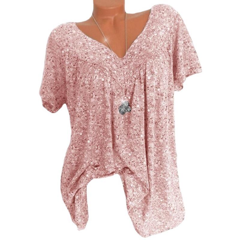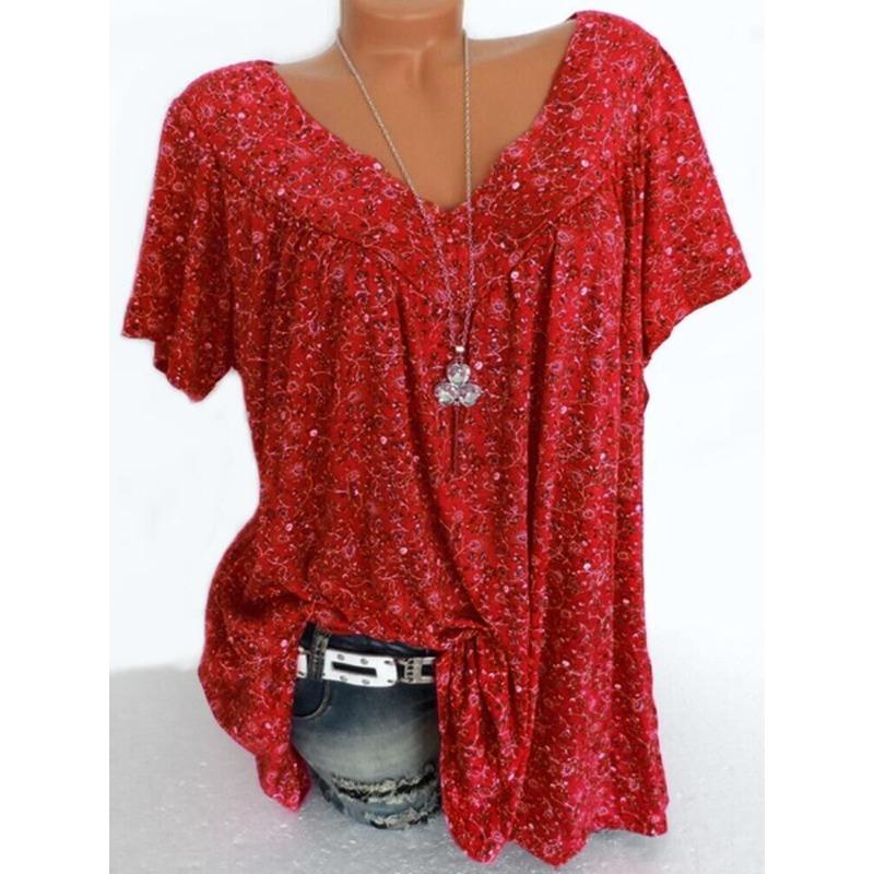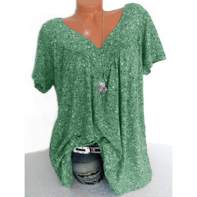 Женская летняя свободная футболка с V-образным вырезом и короткими рукавами с принтом