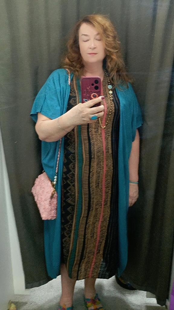 Хлопковая накидка для пляжа и не только. Я лично в ней с удовольствием ходила в первой половине сентября, пока было тепло. Материал хлопок, гладкий и приятный. Цвет тоже понравился, темно-бирюзовый. Раньше такой назывался "цвет морской волны". Накидка безразмерная по сути. Хотя размер единый, ОГ аж 192 см. У меня ОГ 120, ОТ114, ОБ135, рост 178. В комплекте был пояс, но мне нравится носить без него. Хотя летом он, конечно, пригодится, когда надо будет скрыть купальник. Он у меня, кстати, как раз бирюзовый, с узорами. Под него и накидка.
