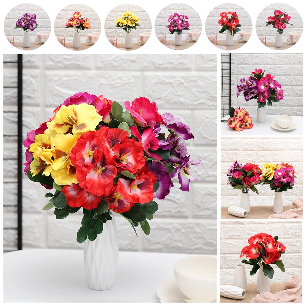 10 head Party Home Room Wedding Artificial Silk Bouquet Pansy Flower Plant Bunch Floral Decor