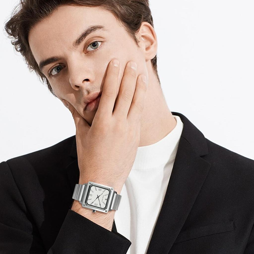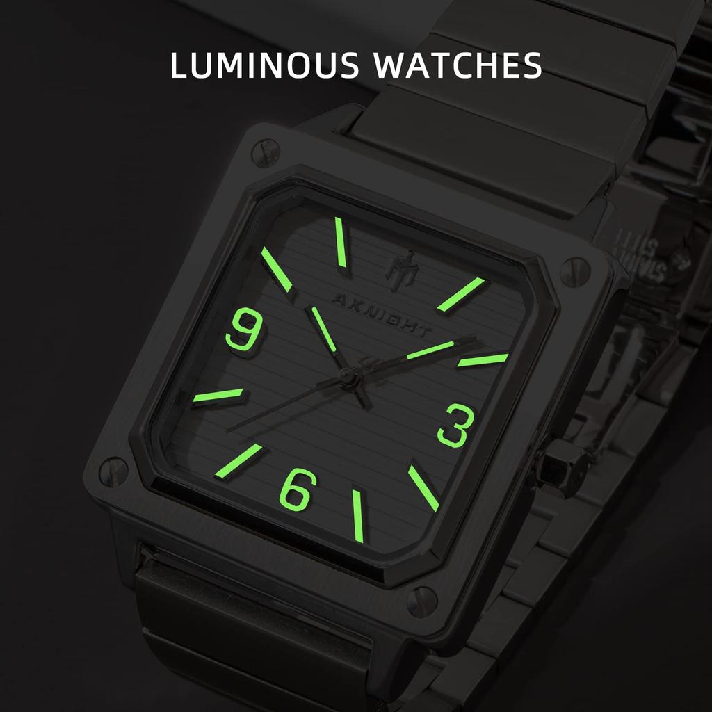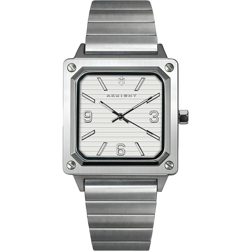 Часы AKNIGHT, популярные, с решетчатым циферблатом, водонепроницаемые, аналоговые, кварцевые, деловые, наручные, из нержавеющей стали, подарок на день, большие, легко читаемые, с квадратным циферблатом, мужские