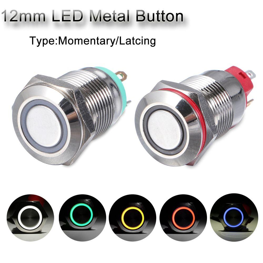 Waterproof Push 3V 5V 9V 12V 24V 110V 220V LED 12mm Metal Button Switch Momentary/Latching