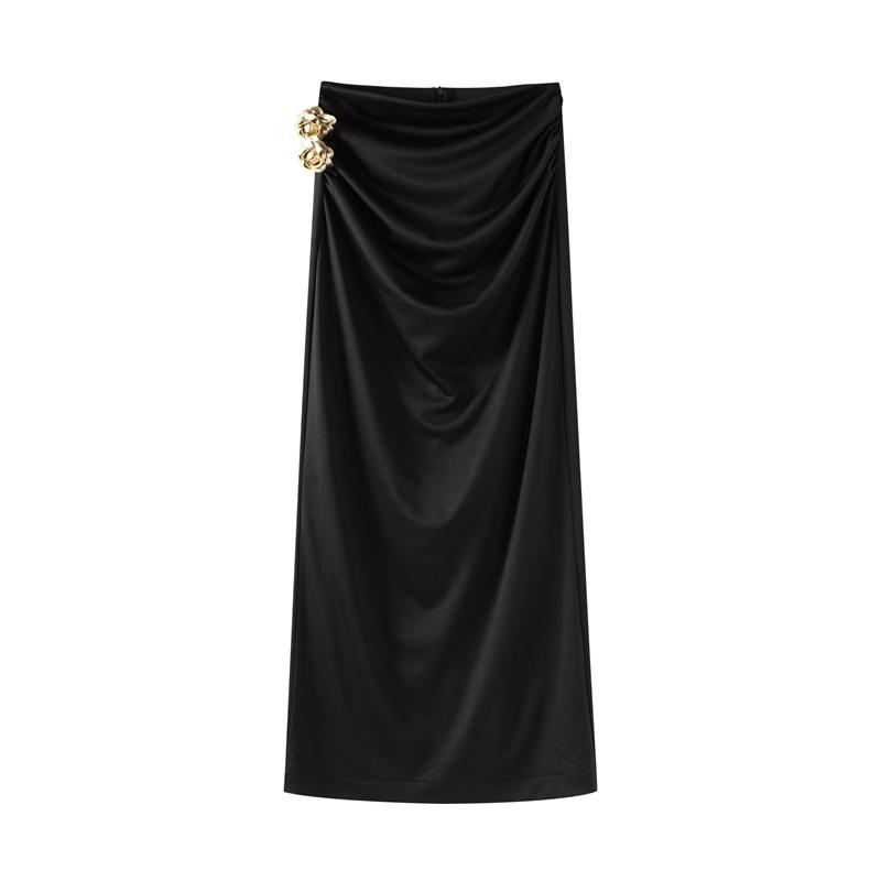 Женские комплекты юбок, сексуальный укороченный топ и юбка-мешок на бедрах, комплект из двух предметов с металлическим цветочным декором, узкие открытые топы, макси-юбки с высокой талией, новая мода на лето