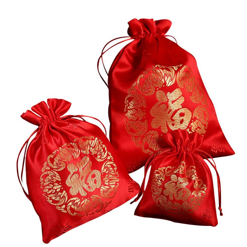 Красная парчовая подарочная упаковка китайские мешочки на удачу мешочек на шнурке для украшений мешочки для конфет и подарков шелковый мешочек Фу