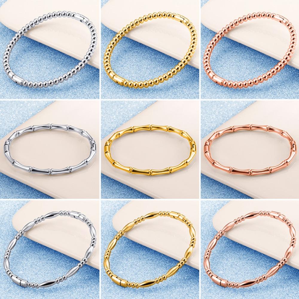 Серебряные браслеты из бамбука, модные ювелирные изделия из нержавеющей стали, классический трендовый браслет для женщин