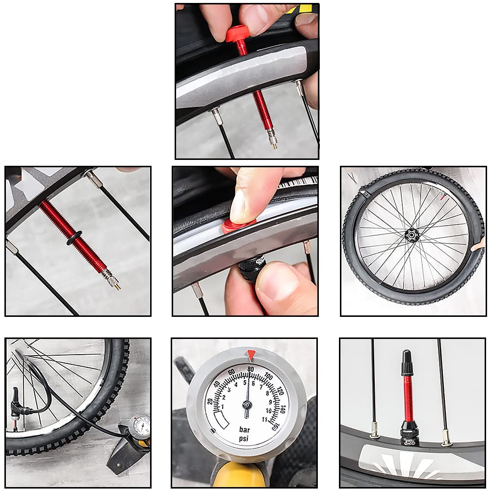 Испытание высоким давлением: Подайте в испытательный резервуар давление воздуха 120 фунтов на кв. дюйм.. Он не только прошел испытание, но и не имеет утечки воздуха.. Подходит для бескамерных шин, легко устанавливается и снимается, отличный инструмент для любителей велоспорта.