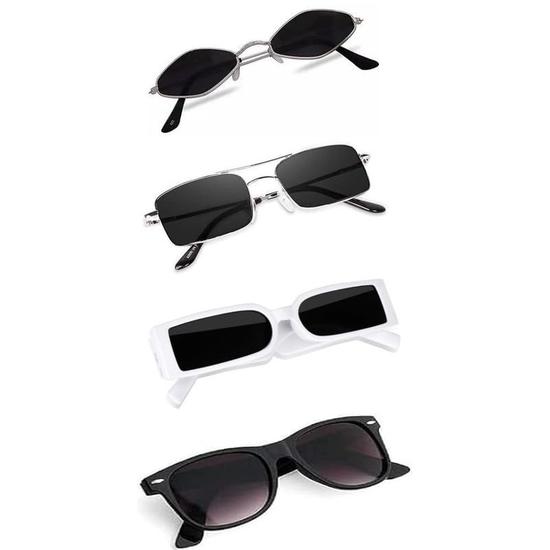 Sheomy Unisex Combo предлагает набор из 4 очков pathan Sunglasses Rectangle Retro Vintage Narrow Women::Мужчины, МКН-274