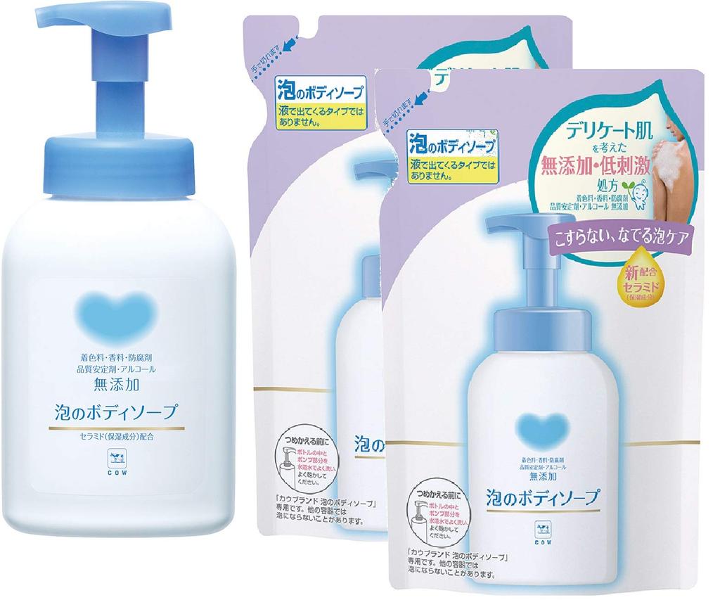 Дозатор мыла для тела с пеной Cow Brand, 2 сменных блока x основной блок, 2 сменных блока, без добавок (550ml) + (500мл 2) +