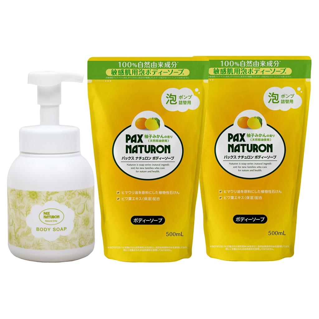 Pax Naturon Foam Body Soap Yuzu Mikan Refill 500 мл x 2 пакета Плотная пена для тела Набор бутылок для чувствительной кожи Натуральное средство для кожи Предотвращает увлажнение кожи