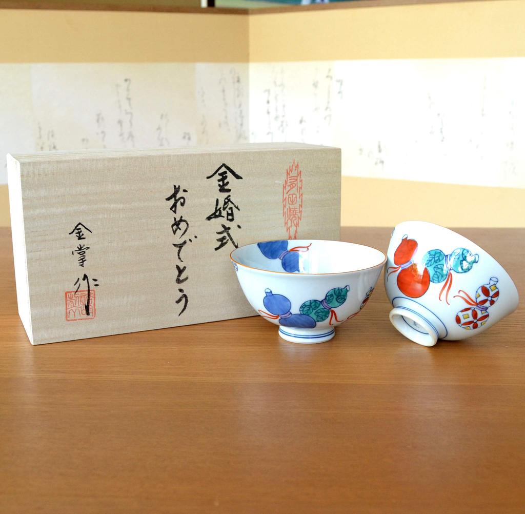 Золотая свадьба благоприятный подарок для хорошего Арита вар рис Набэсима шесть подарочных карт и открыток с посланием деревянная коробка подарок, здоровье, супружеская чаша, чаша,