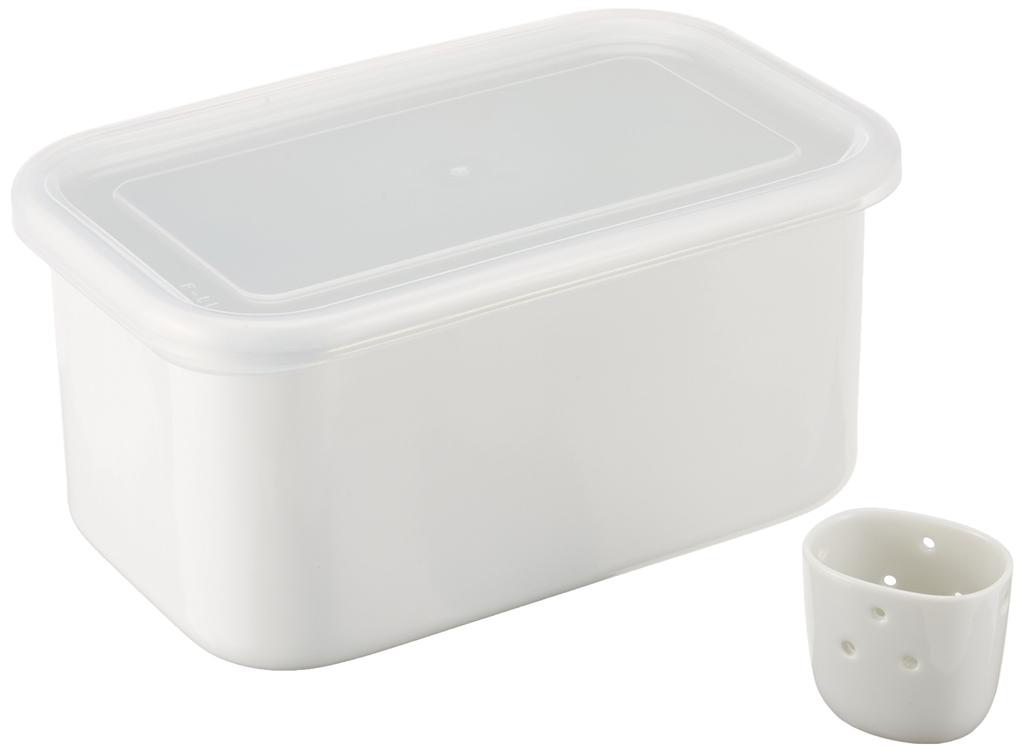 Контейнер для хранения солений Noda Horo, эмалированный квадратный прямоугольник с водосливом, белая серия, маринованная красота, сделано в Японии, 3,2 л, TK-32