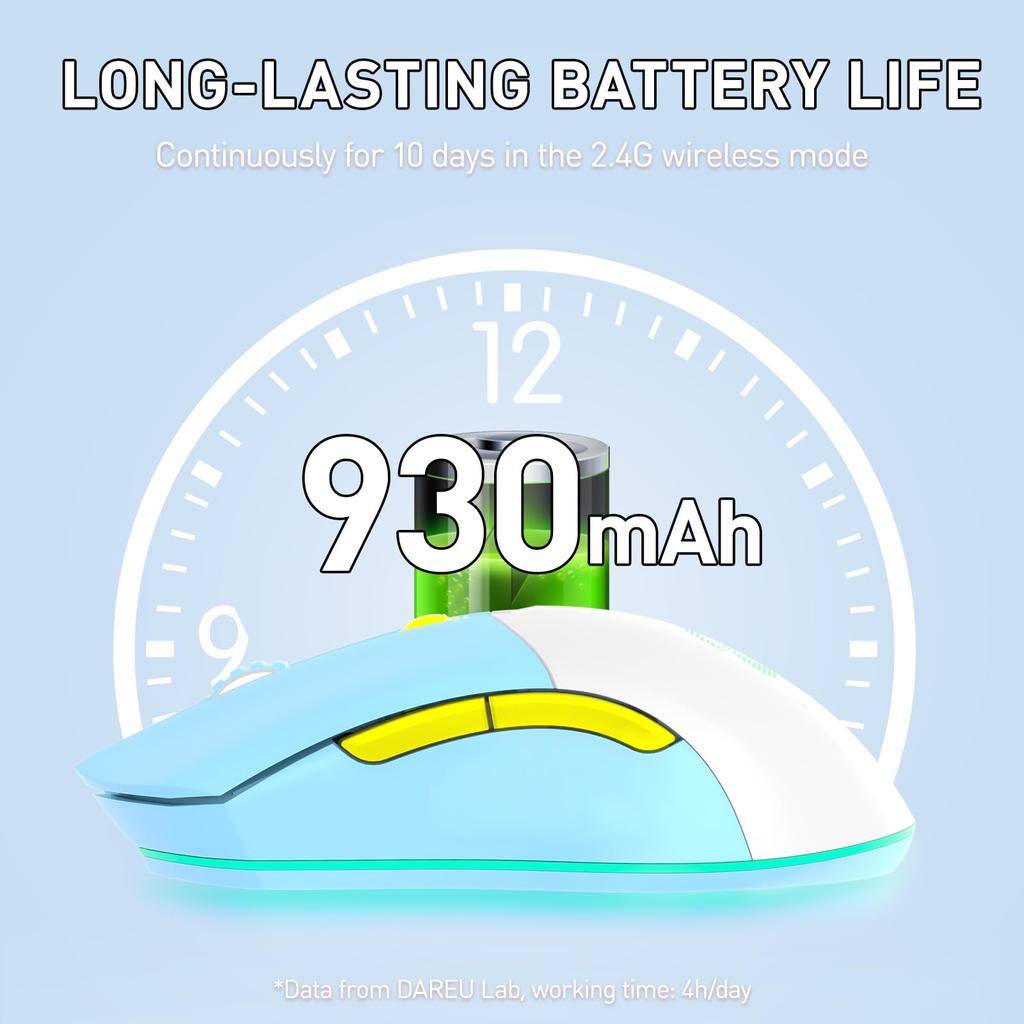 Игровая мышь DAREU беспроводная легкая беспроводная USB-подключение сверхлегкая 85 г эргономичная симпатичная 12000 точек на дюйм зарядная док-станция в комплекте программируемая EM901X год