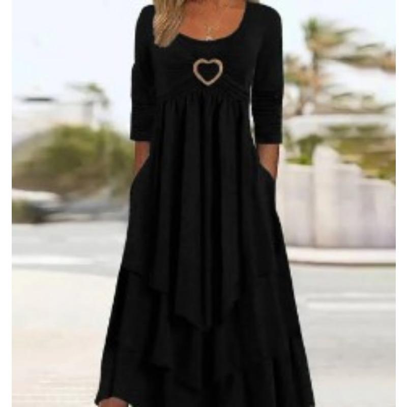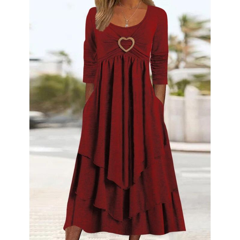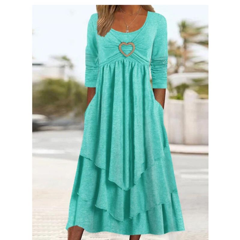 YYFS Женская мода весна осень Love Letter Print Длинные рукава O-образный вырез Свободная талия Повседневные платья