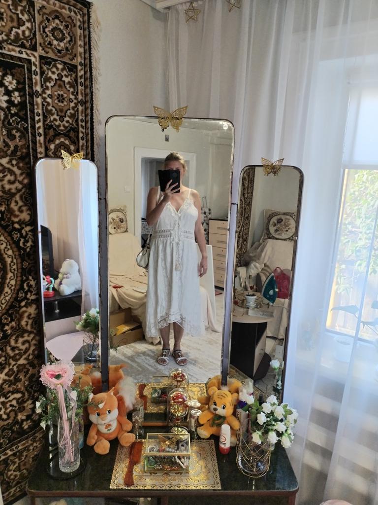 Платье просто супер. Я ношу s но взяла м и не прогадала . Как на фото так и в жизни . Я очень довольна. Нежное и красивое