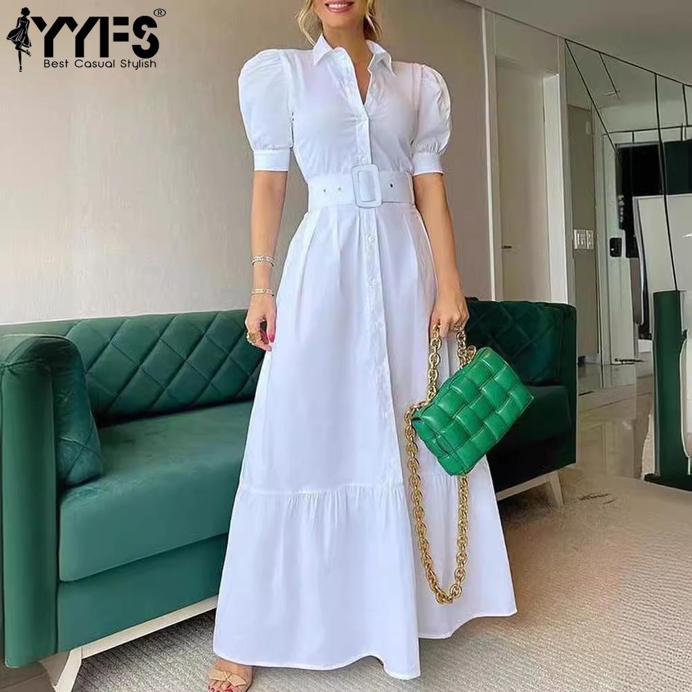 YYFS женские модные летние весенние однотонные повседневные платья с короткими рукавами и воротником-поло с высокой талией и принтом — купить товар онлайн с бесплатной доставкой по всему миру!