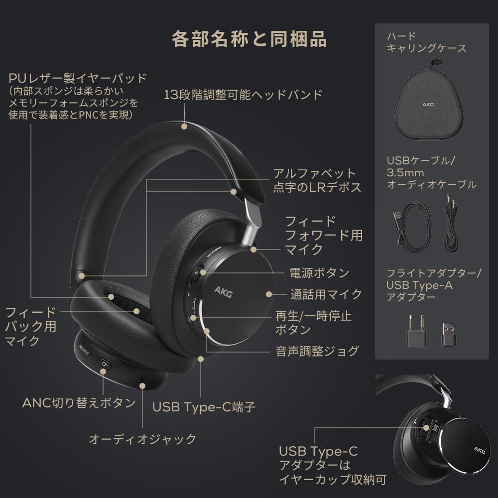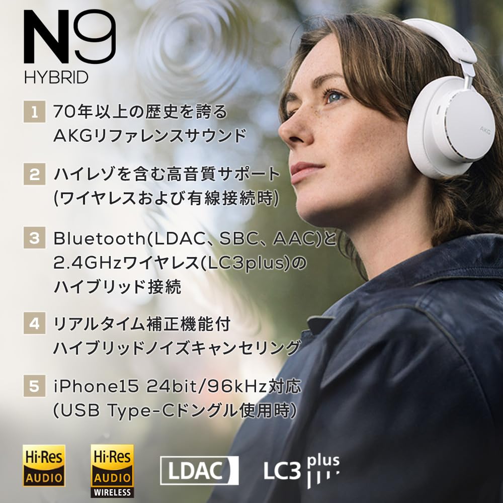 AKG N9 HYBRID Беспроводные наушники Высокое разрешение LDAC Беспроводные наушники Док-станция LC3Plus iPhone15 Проводные AKGN9HYBRIDBLK Накладные 2.4ГГц Hi-Res (черный)