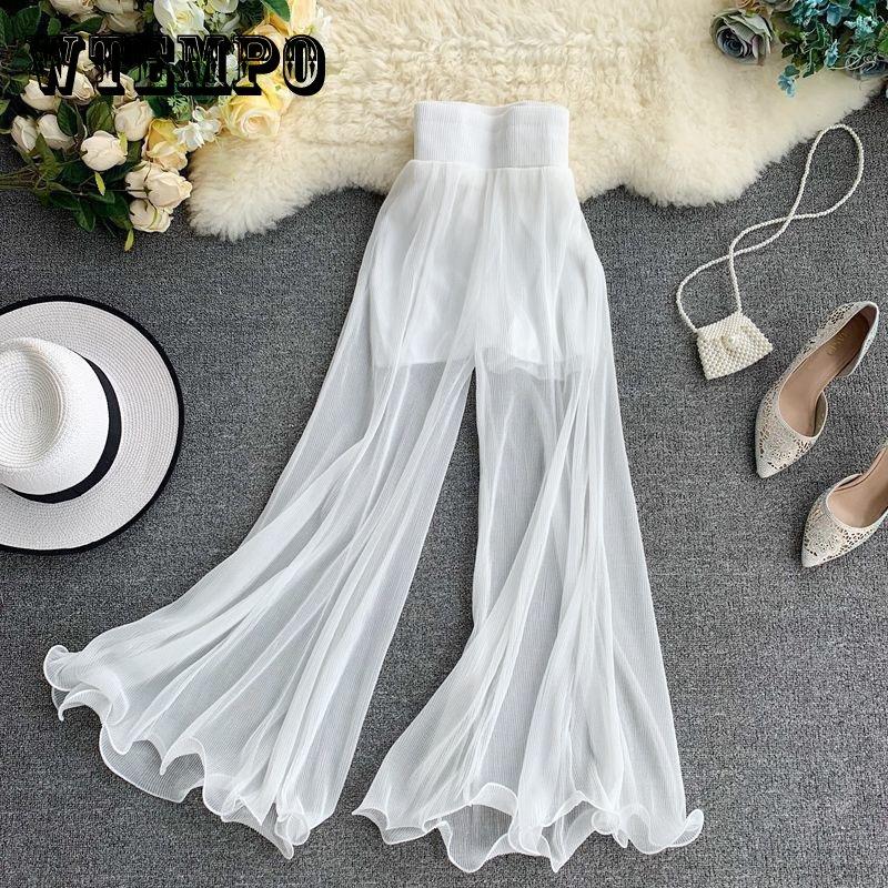 Женские летние широкие брюки с рюшами, расклешенные брюки «рыбий хвост», плиссированные брюки в западном стиле с эластичной талией