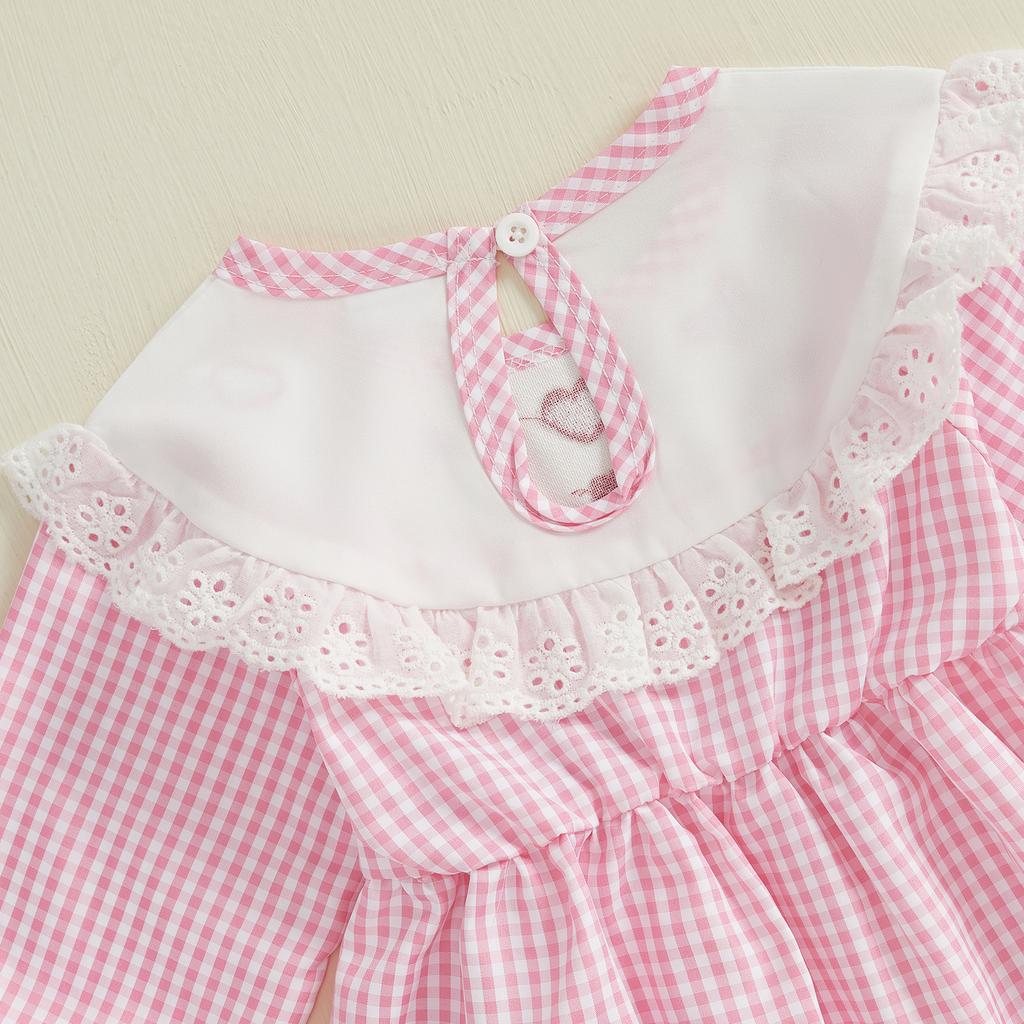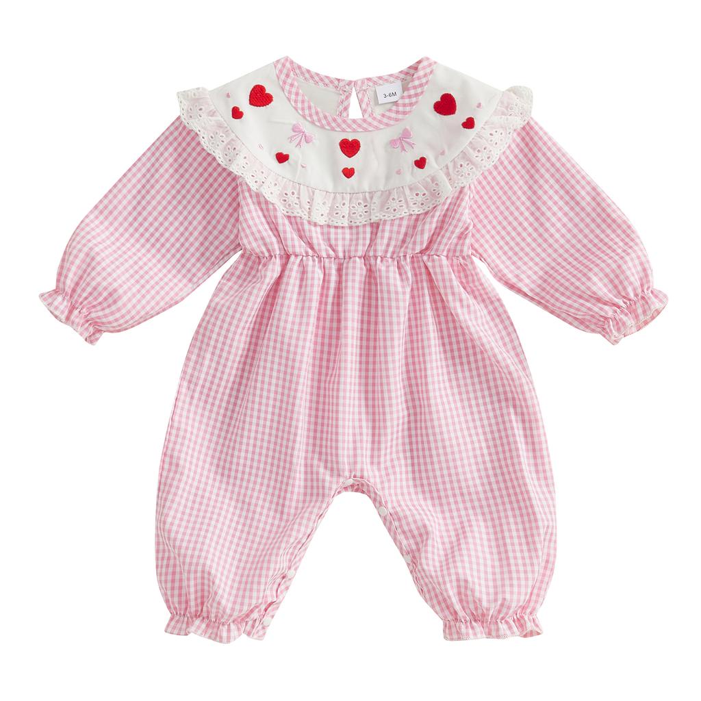 Детский комбинезон на осень с длинными рукавами и кружевным принтом в клетку, весенний наряд для малышей