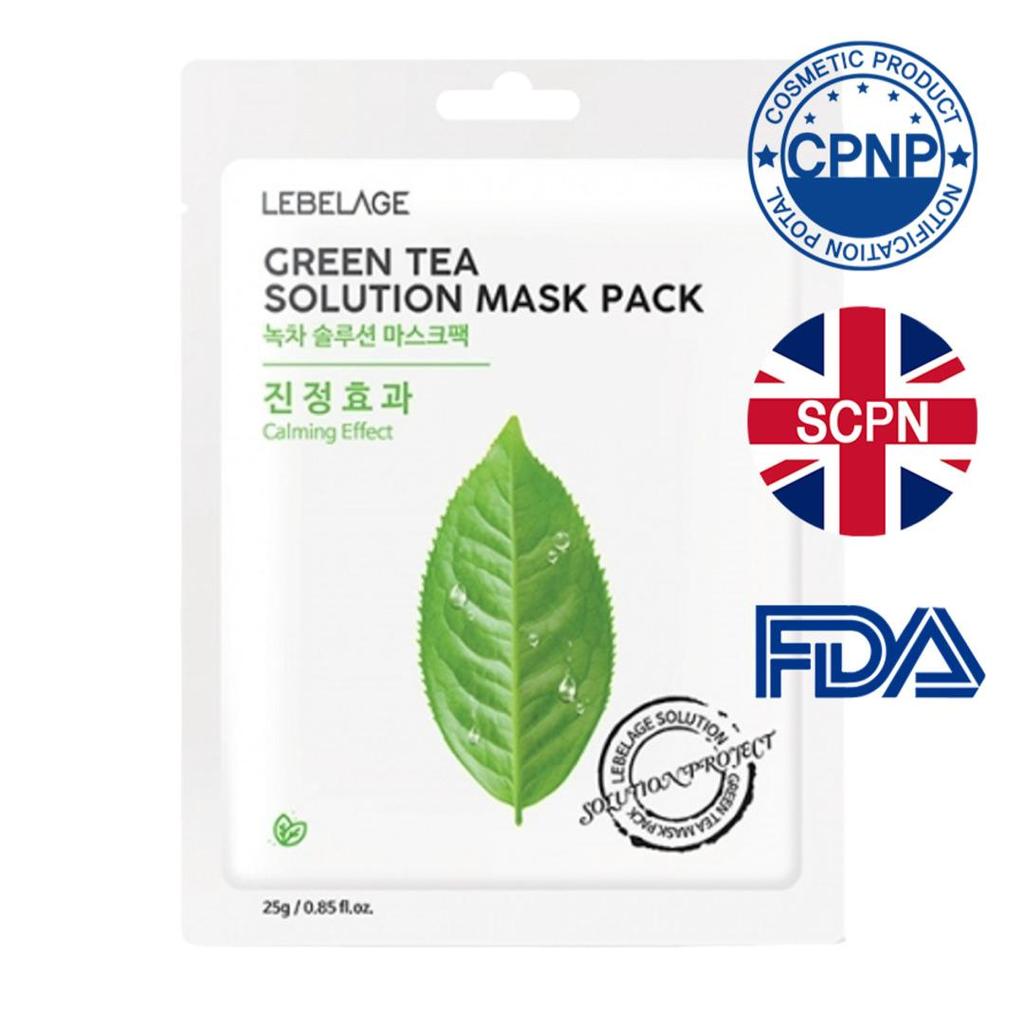 [Lebelage] Маска с раствором зеленого чая (10 листов) – Увлажняющие и успокаивающие маски для лица