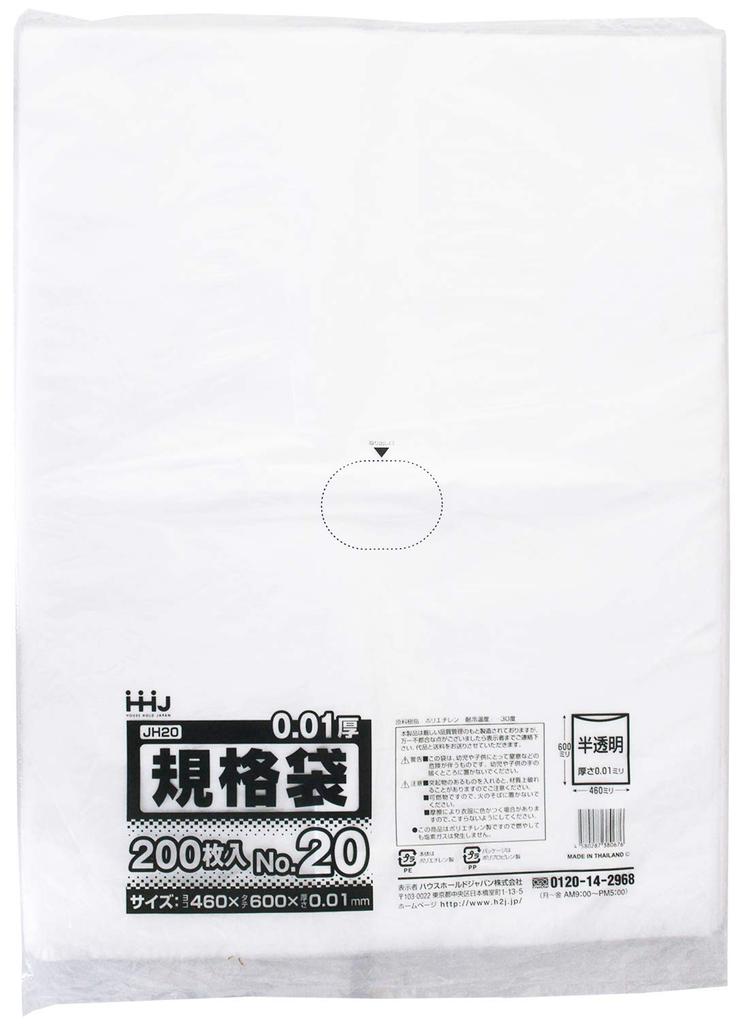 Бытовой японский стандартный пакет 46 x 60 см, толстый, полупрозрачный, 200 штук, соответствует инспекции пищевых продуктов JH20 № 20 0,01 мм