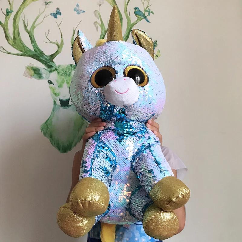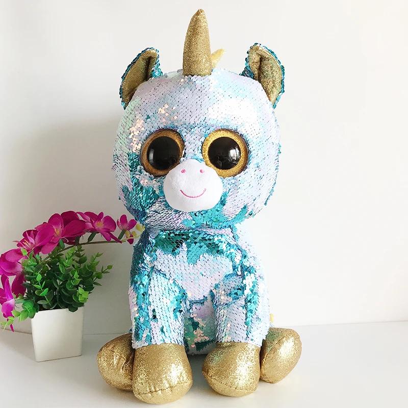 45 см большие глаза блестки синий единорог ослепительная мягкая игрушка милая кукла животное дети день рождения Рождество Новый год подарки