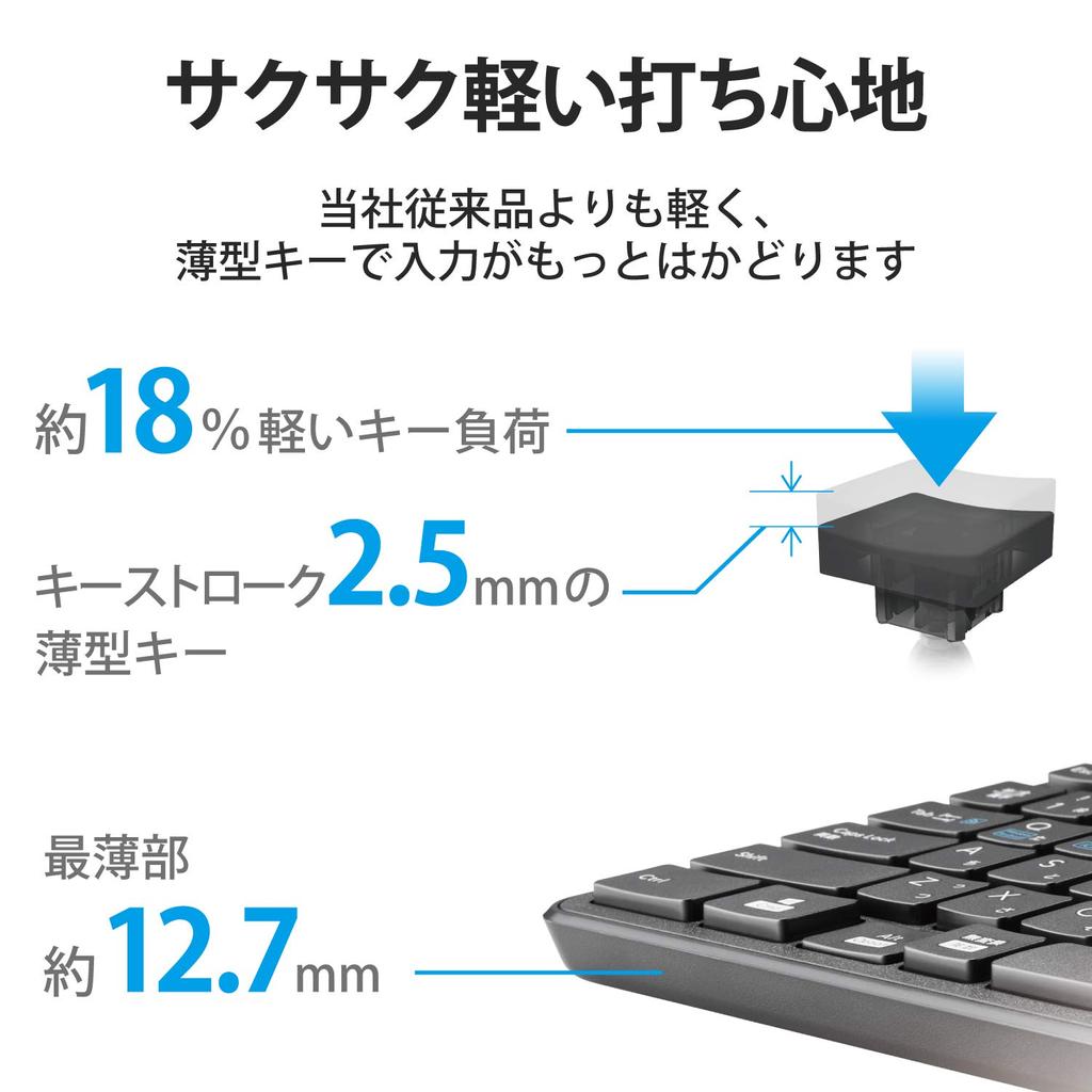 Вес клавиш при нажатии примерно на 18% легче, чем у наших обычных изделий, что позволяет нажимать клавиши с меньшим усилием.. *По сравнению с TK-FDM075TBK