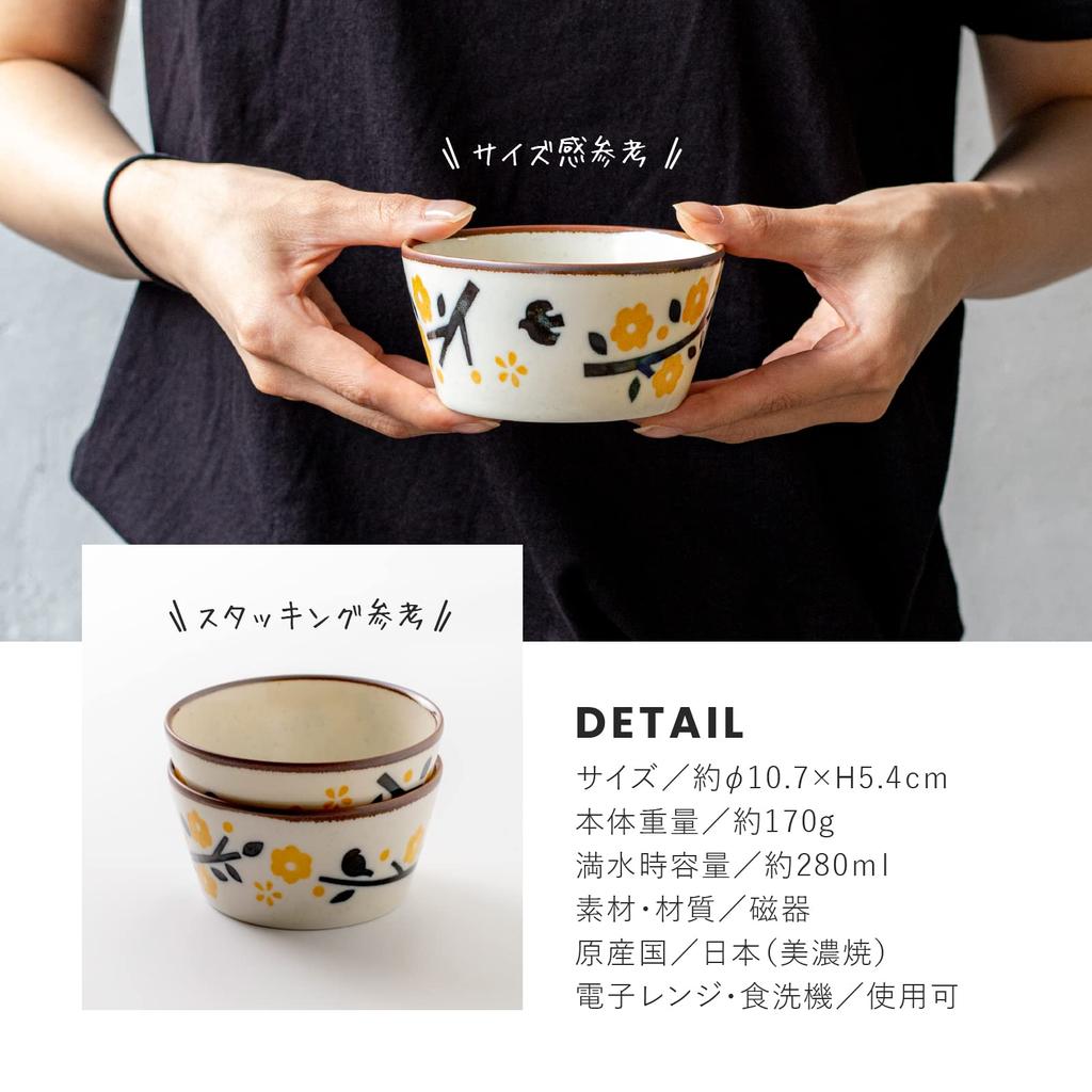 Минору Поттери Мино Яки 105 Упаковка Миска Желтый Набор из 2 штук PLANTAREE-KOHARU- 10,5 см