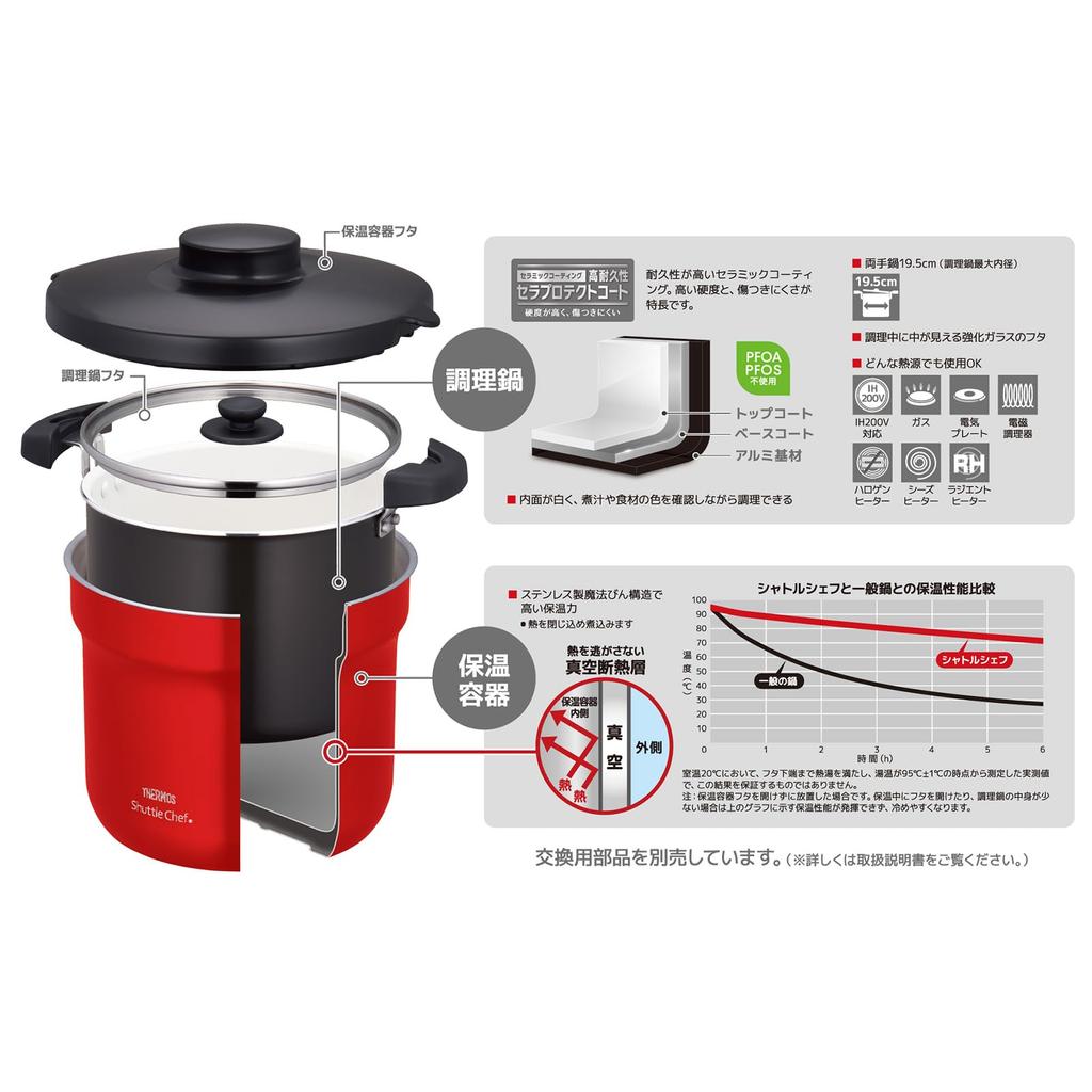 Термос с вакуумной изоляцией Shuttle Chef 4 to 6 Urban Red Cera Protect Coat UR 4.3L (для людей) КБЖ-4502