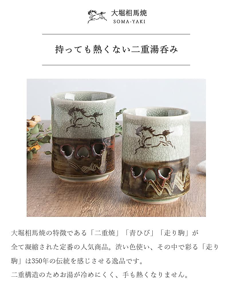 Ohori Soma Ware Matsunaga Kiln Wooden Box Double Tea Cup Gift Candle Gift Candle Cup Style Double Heat Retention Double Tea Cup (2,4 дюйма)