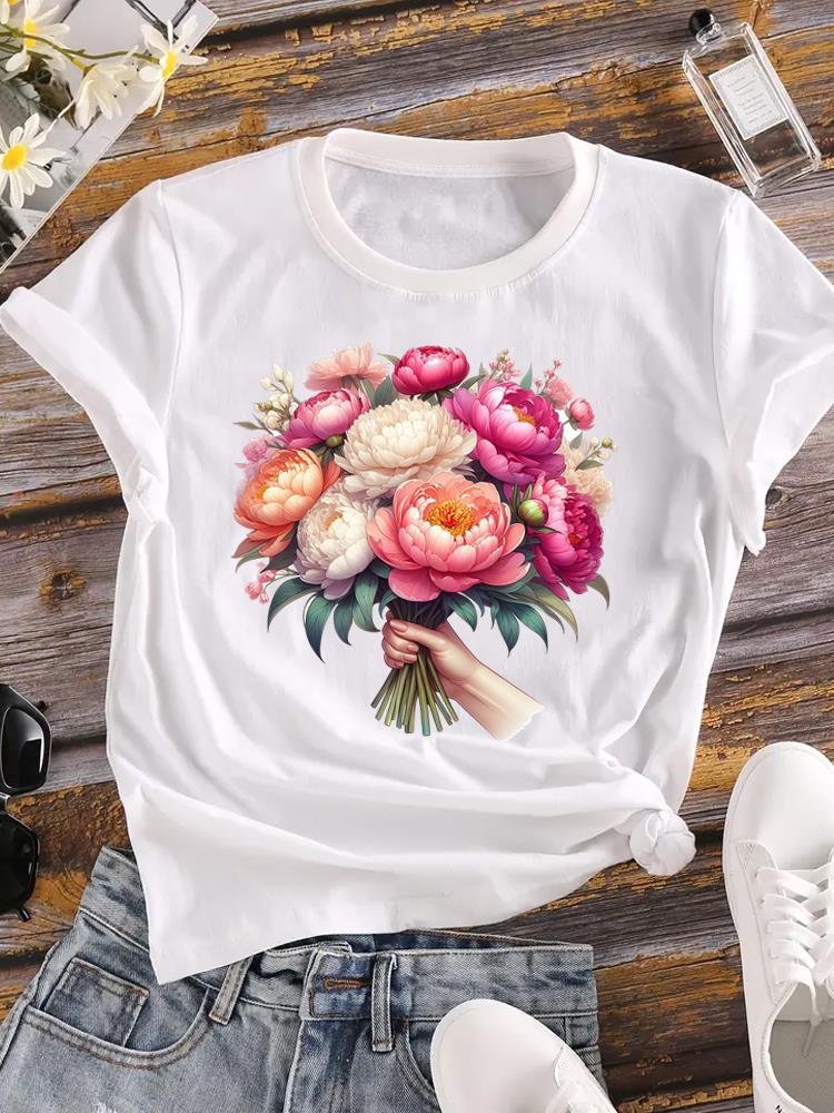(Азиатский размер) Одежда Повседневная Цветочная Растительная Цветочная Милая Модная Футболка С Коротким Рукавом Женская Футболка С Принтом Женская Графическая Футболка — купить товар онлайн с бесплатной доставкой по всему миру!