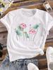 (Азиатский размер) Одежда Повседневная Цветочная Растительная Цветочная Милая Модная Футболка С Коротким Рукавом Женская Футболка С Принтом Женская Графическая Футболка