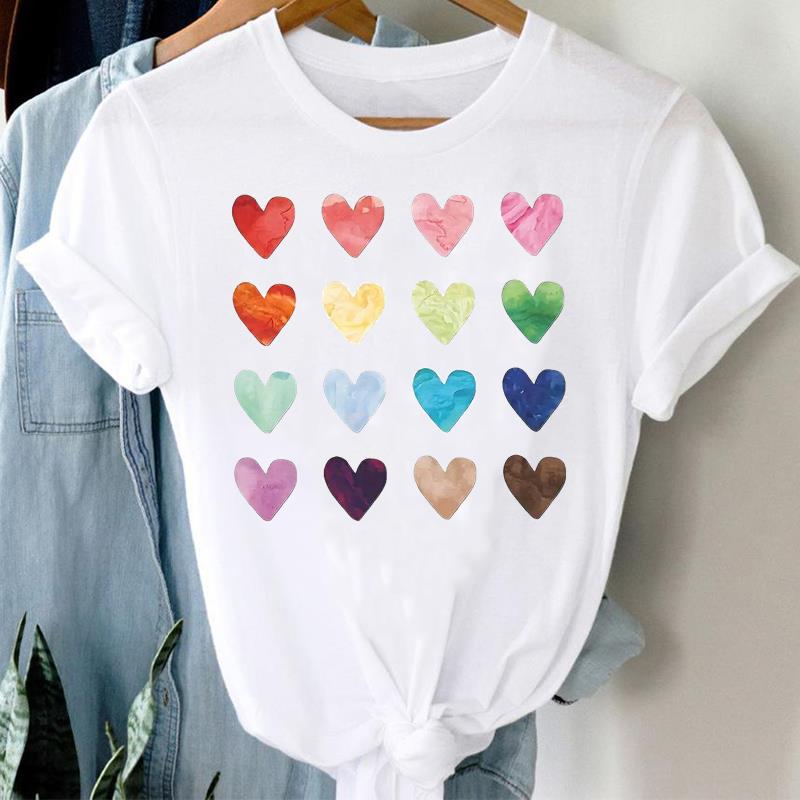 (Азиатский размер) Любовь Сердце Геометрическая Одежда Повседневная Цветочная Женская Футболка Топ Модная Футболка с Коротким Рукавом Принт Женская Графическая Футболка — купить товар онлайн с бесплатной доставкой по всему миру!